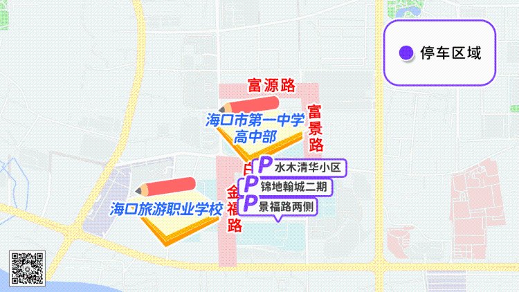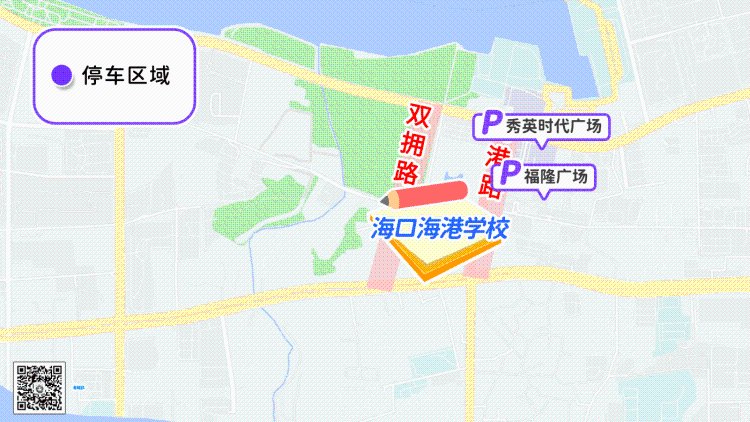 送考车辆请有序停放在秀英时代广场、福隆广场等考点周边停车场,以免扎堆停放造成拥堵。