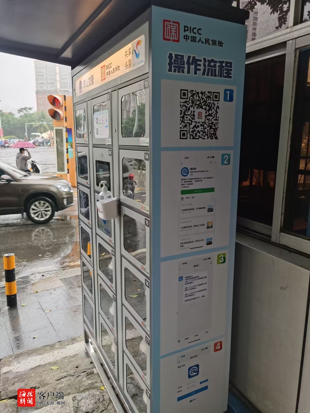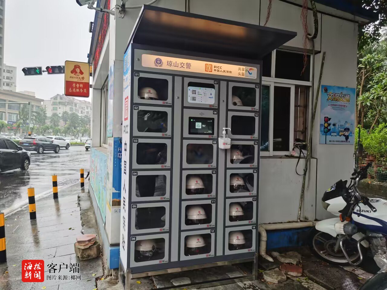 11月29日,记者来到龙昆南大转盘路口,在交警岗亭旁看到新增设的一共享头盔点位,立式柜上标注着“琼山交警”“共享头盔”等字样,并张贴详细的取头盔操作流程。立式柜共有18个格子,里面存放着符合国家标准的同款式安全头盔,其中6个格子里的安全头盔已被借用。