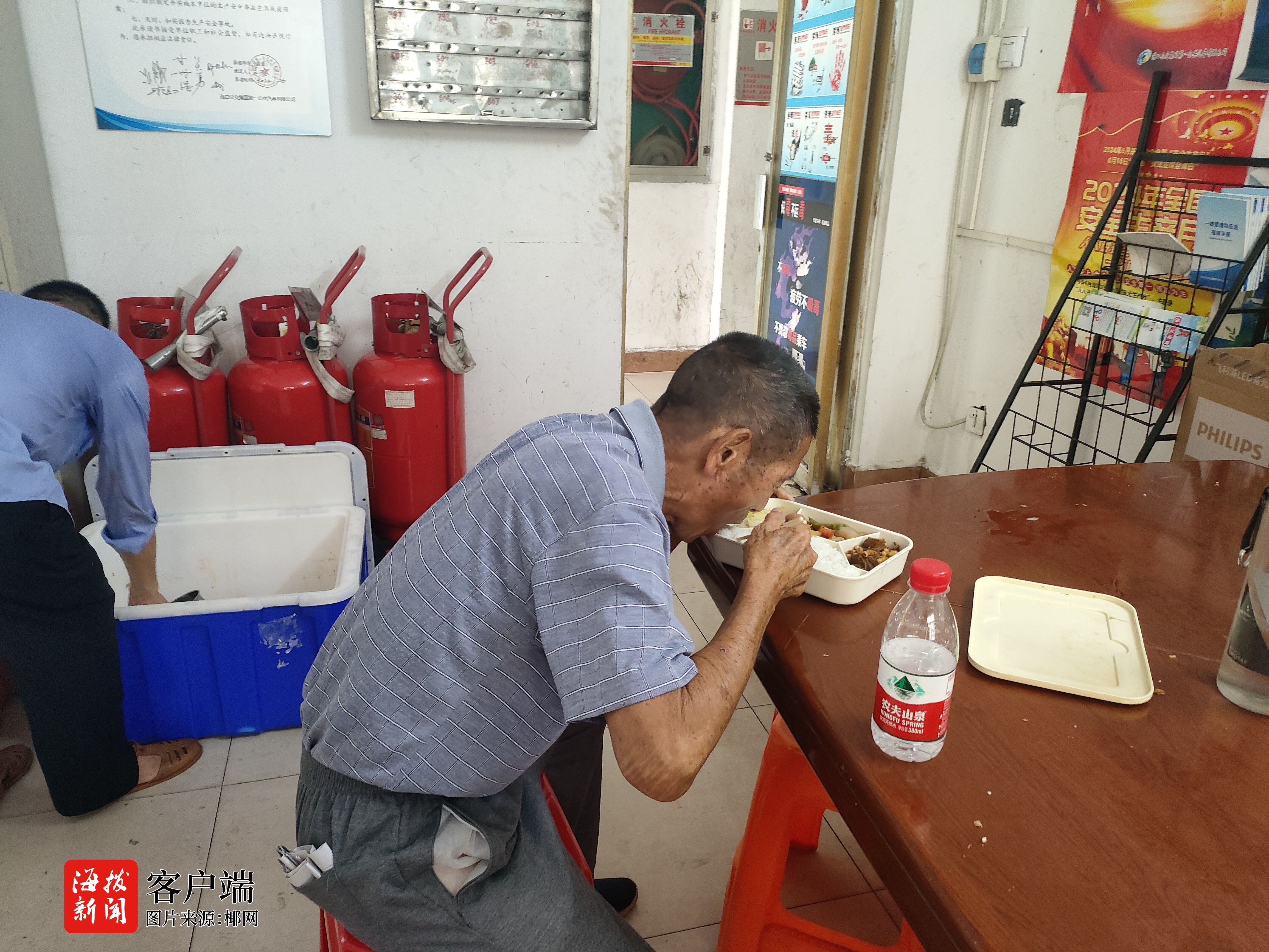 因接近中午,在调度室,队管员陈岁给老人拿来工作餐,吃完后,陈岁再次与老人沟通无果,且其身上也未发现家属联系方式等信息,无奈之下,为尽快帮助老人回家,工作人员报警求助。