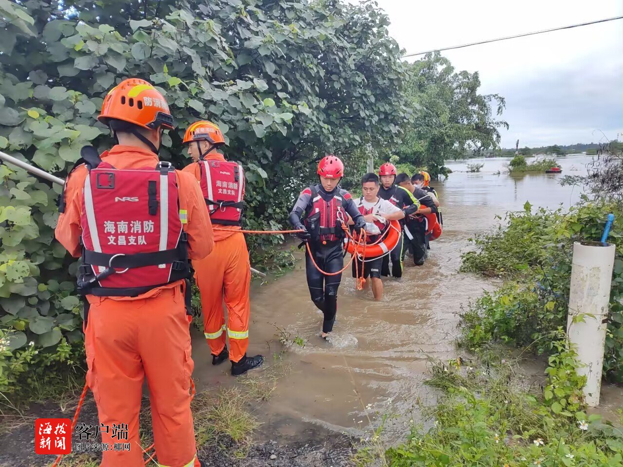 11月9日,文昌市消防救援支队指挥中心接到群众报警:位于文昌市文城镇头苑办事处后港桥附近水位上涨,3名男子被困瓦房内需救援,接警后。文昌消防立即调派消防救援人员前往处置。