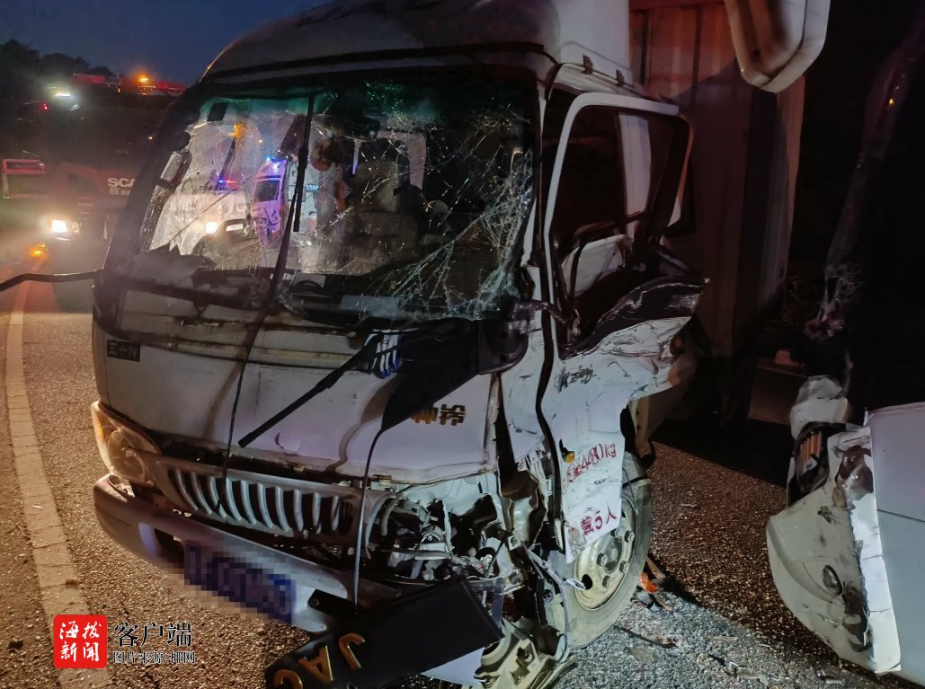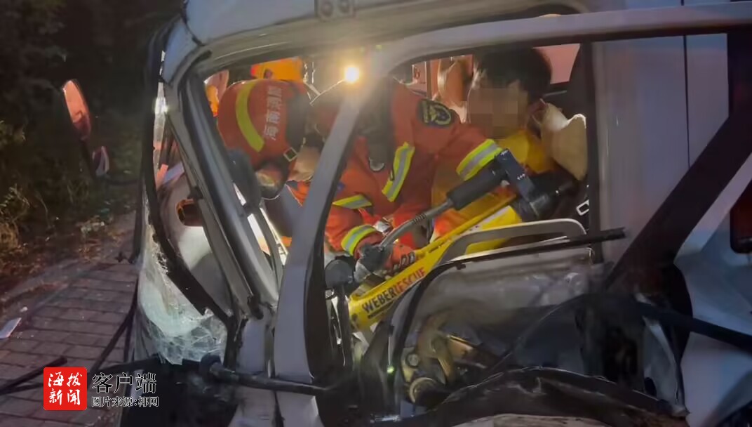 4月15日,三亚市吉阳区太阳湾路附近一辆大巴车与一辆货车相撞,货车驾驶员双腿被卡在驾驶室中无法动弹,经过三亚消防15分钟的紧急救援,驾驶员被成功救出并送往医院。