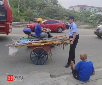 近日,一名老人喝醉后躺在三亚市海棠区藤桥镇讯发加油站路口处,藤桥海棠分局民警及时赶往现场救助,获老人致谢。