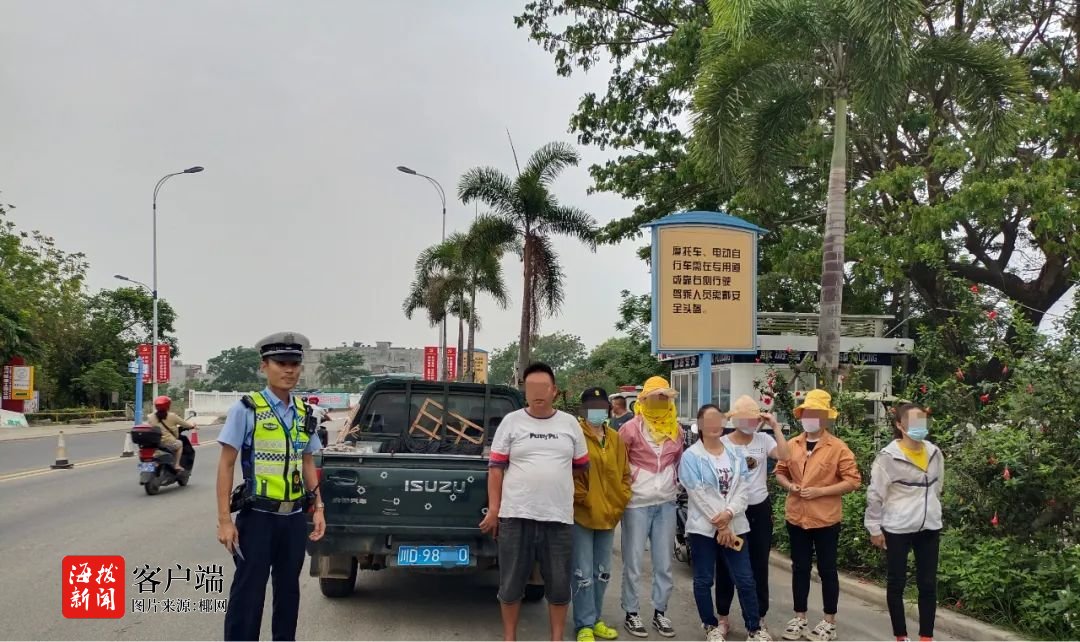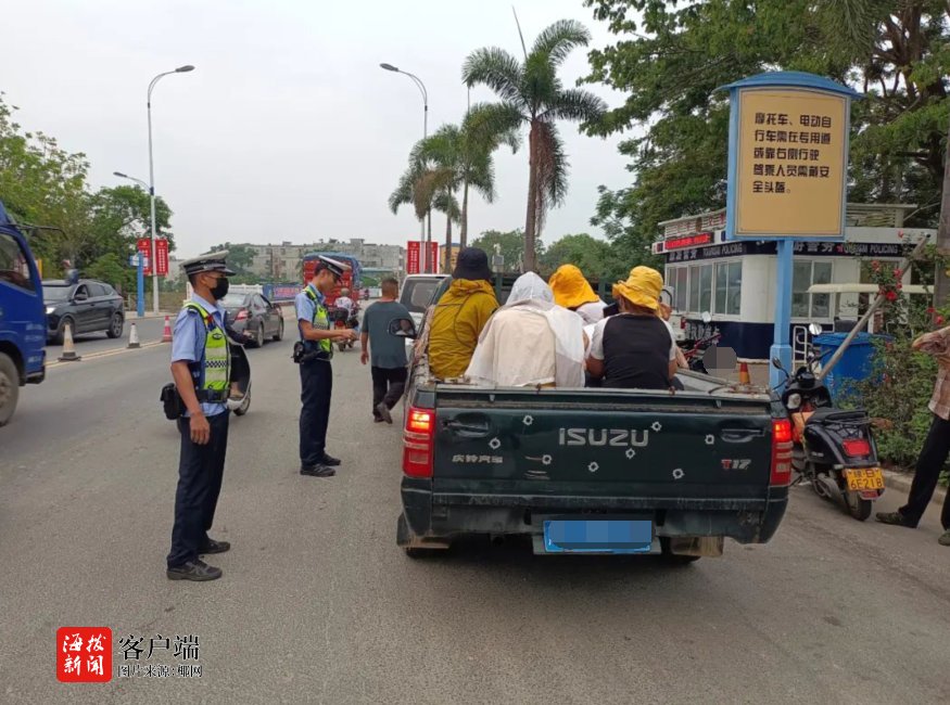 近日,记者从三亚交警获悉,三亚交警路管员巡逻时发现一辆皮卡车后车厢违法载人,核载5人,实载7人,其中后车厢违法载客5人。三亚交警将依法对货车驾驶人岑某宝(男,42岁)处以2000元罚款的处罚,机动车驾驶证记3分。