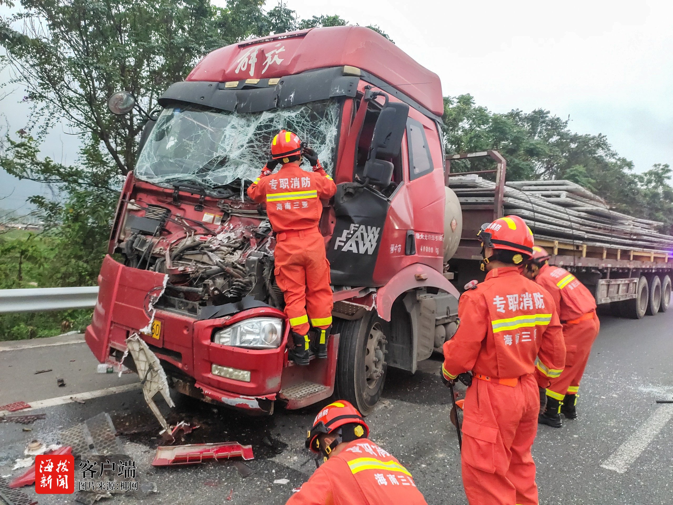 据了解,4月22日,三亚消防指挥中心接到报警,称三亚市海棠区高速公路往三亚方向发生一起交通事故,有人被困,指挥中心接警后立即调派海棠湾消防站赶往现场处置。