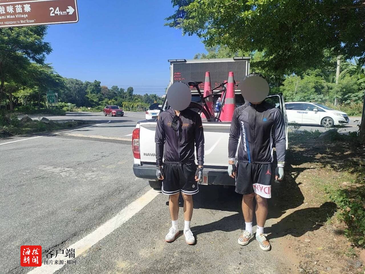 高速公路是专供汽车高速行驶的道路,行人和非机动车都禁止上高速,然而,两名男子近日为了一时“刺激”,想要骑着自行车往高速上行驶,被三亚交警执勤交警及时劝离。