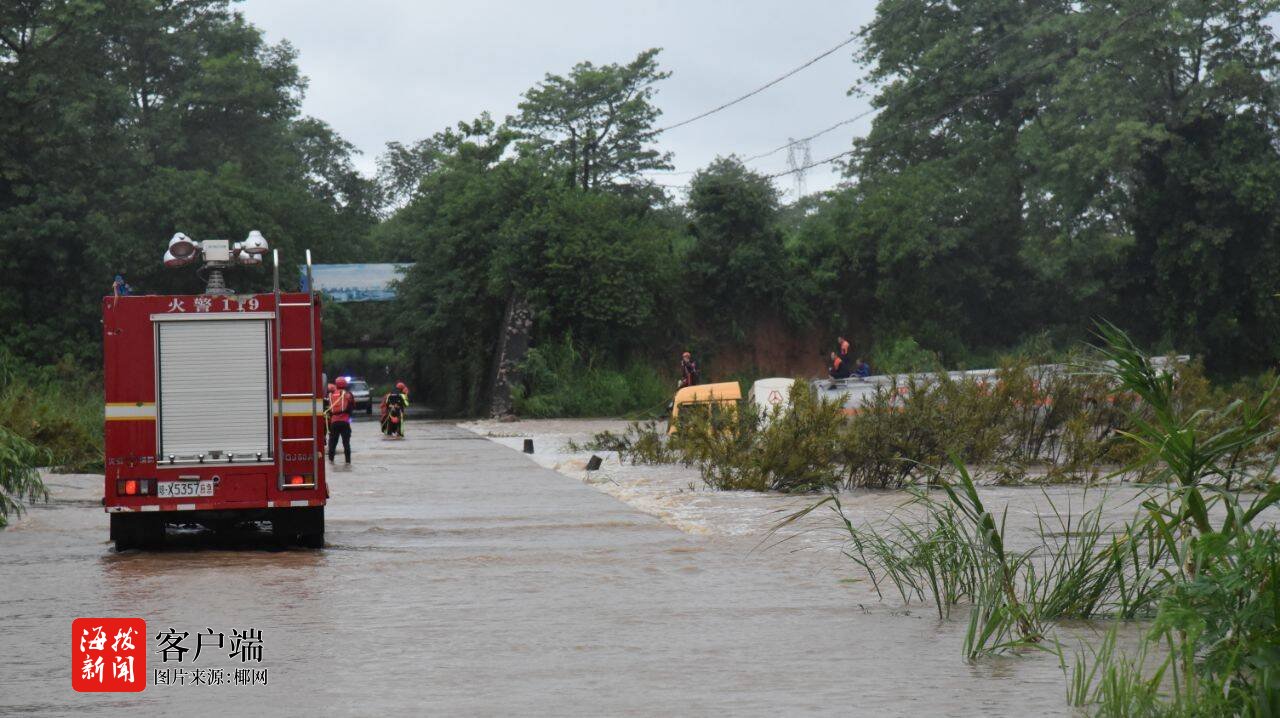 受台风“派比安”影响,昌江黎族自治县迎来连续降雨天气,部分道路出现被河水淹没的情况。