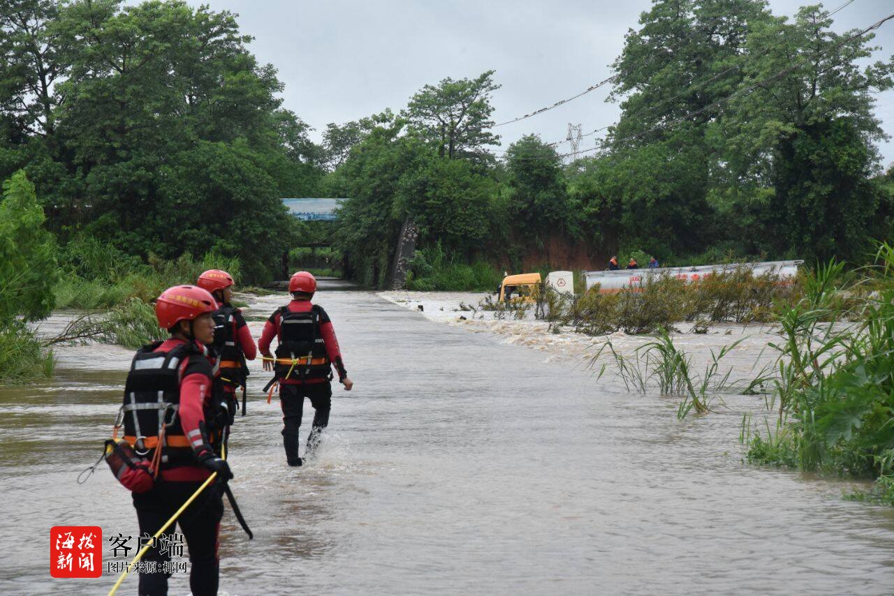 7月22日12时53分,昌江消防指挥中心接到群众报警称,昌江县叉河镇水富村附近一油罐车上有3名群众被困水漫路段,接到报警后,昌江消防指挥中心立即调派3辆消防车18名消防救援人员赶赴现场处置。