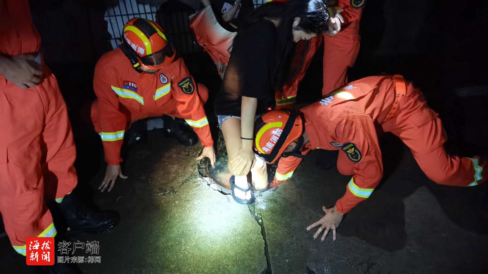 7月18日凌晨,儋州一女子因天太黑没看清路,走路时不小心脚卡在下水道钢筋夹缝中无法脱困,幸亏消防及时救助。