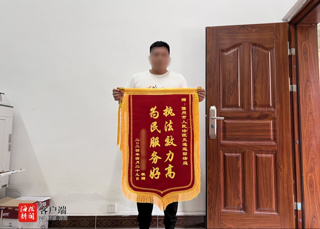 近日,儋州市人民法院交通巡回法庭成功调解了一起机动车交通事故死亡赔偿纠纷,并收到符某某家属送来的致谢锦旗。