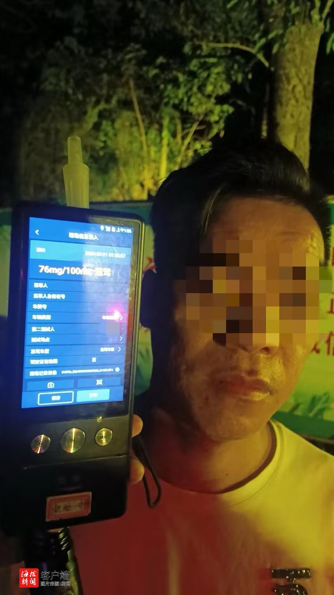 近日,儋州市公安局交警支队组织警力在那大城区开展夏季整治行动时,对一辆琼FE13**的小型普通客车进行例行检查。当车窗降下时民警便闻到浓重的酒气,随即民警依法对该车辆驾驶人李某某进行呼气式酒精含量测试,其结果为76mg/100ml,属于饮酒后驾驶机动车。
