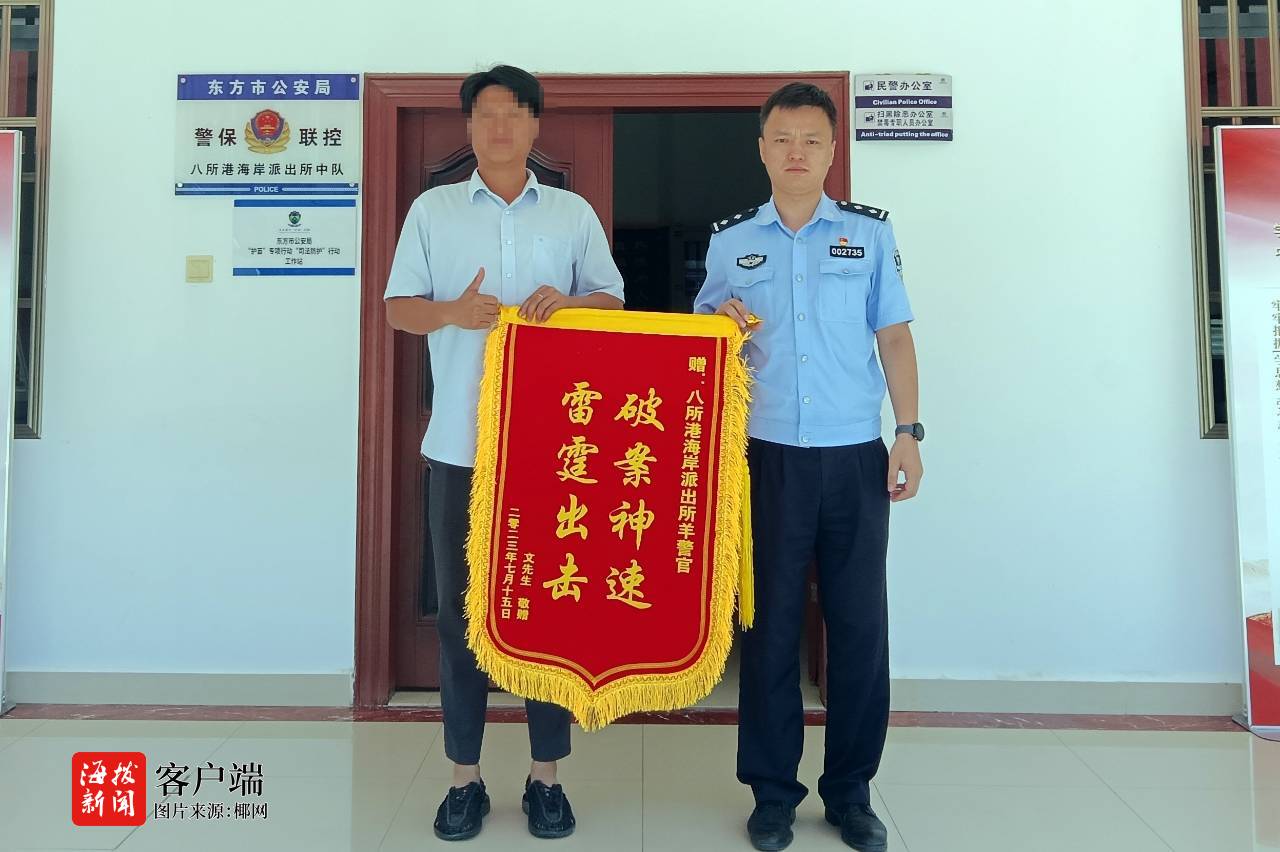 犯罪嫌疑人符某因涉嫌盗窃罪,经东方市公安局批准,被依法刑事拘留。张某因已满14周岁未满16周岁,依法对其处以行政拘留不予执行的处罚。7月15日,民警将被盗摩托车发还文先生,文先生向警方赠送锦旗表示感谢。