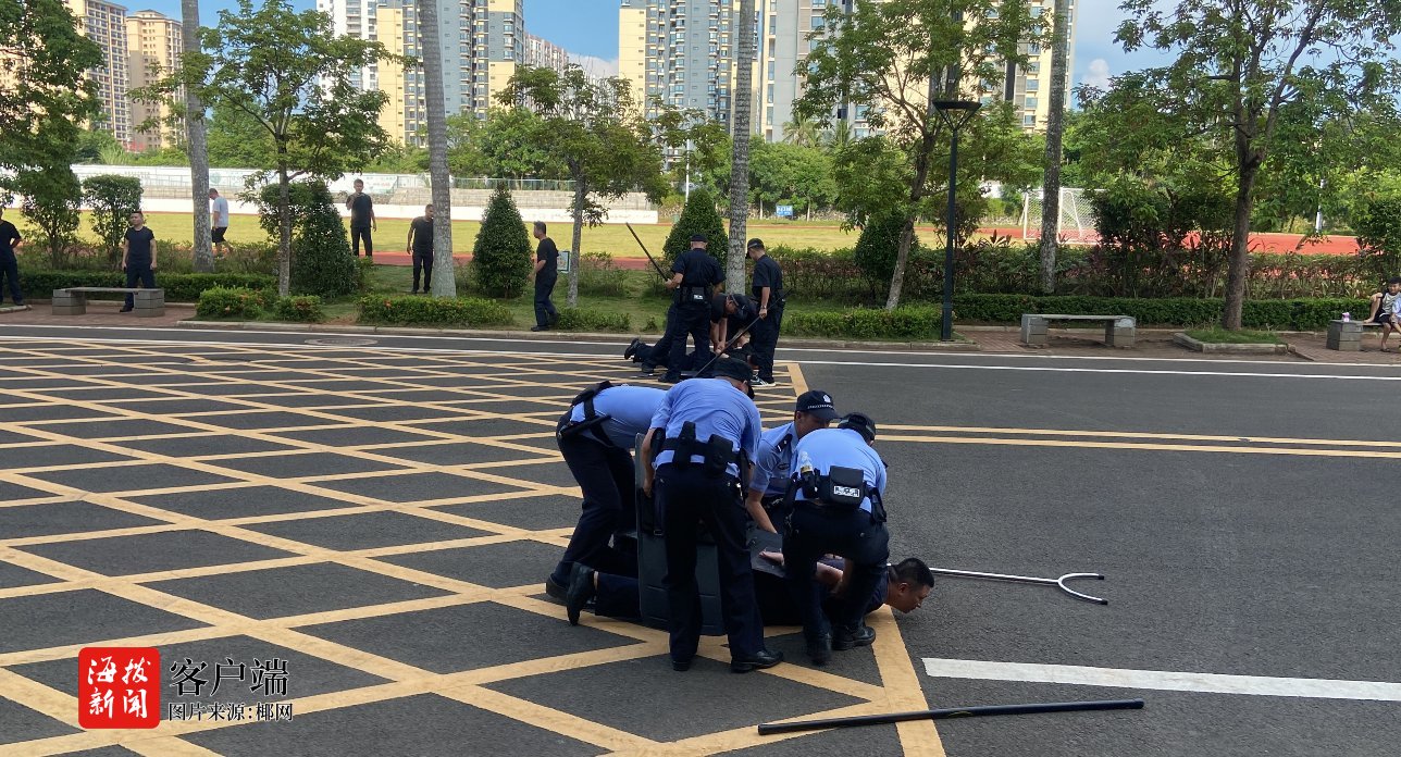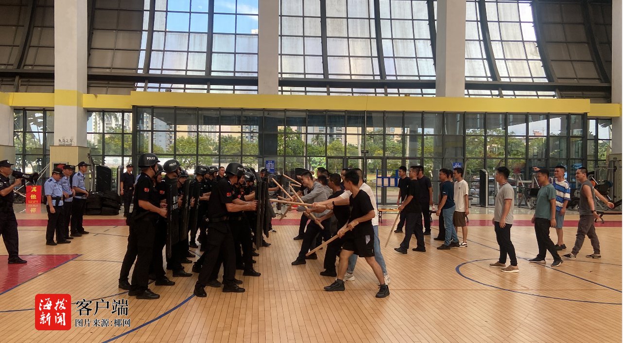 7月12日,临高县公安局在文澜体育公园开展临高县夏季治安打击整治专项行动“群体性事件处置及个人极端事件”实战演练。县公安局巡警大队、留置陪护大队、东门、西门派出所等50余名警力参加演练。