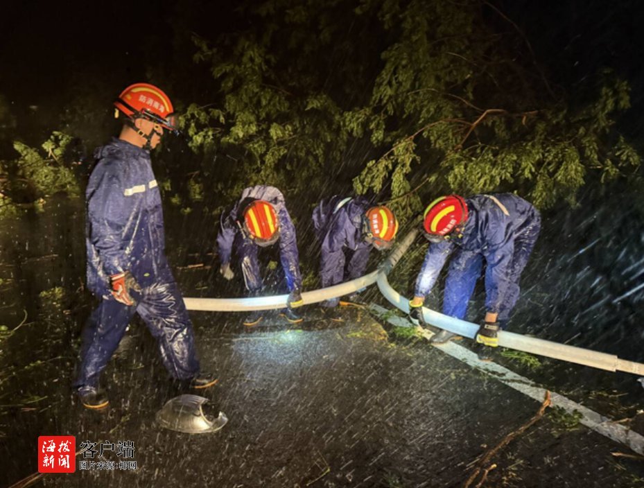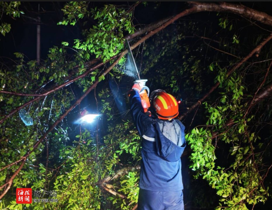 清理过程中,消防救援人员顶风冒雨、连续作战,动用油锯、照明灯和清运车辆等设备,对主干道沿线的倒伏树木进行分段切割和转移。夜间作业现场,灯光与车灯交织,油锯声与协作号子声此起彼伏。在复杂环境下,救援人员高效配合,最终成功清理了从凤凰路至三亚凤凰机场双向通道,海棠南路至海棠北路道路上倒塌的树木,清障共计37公里,实现主干道基本恢复通行。