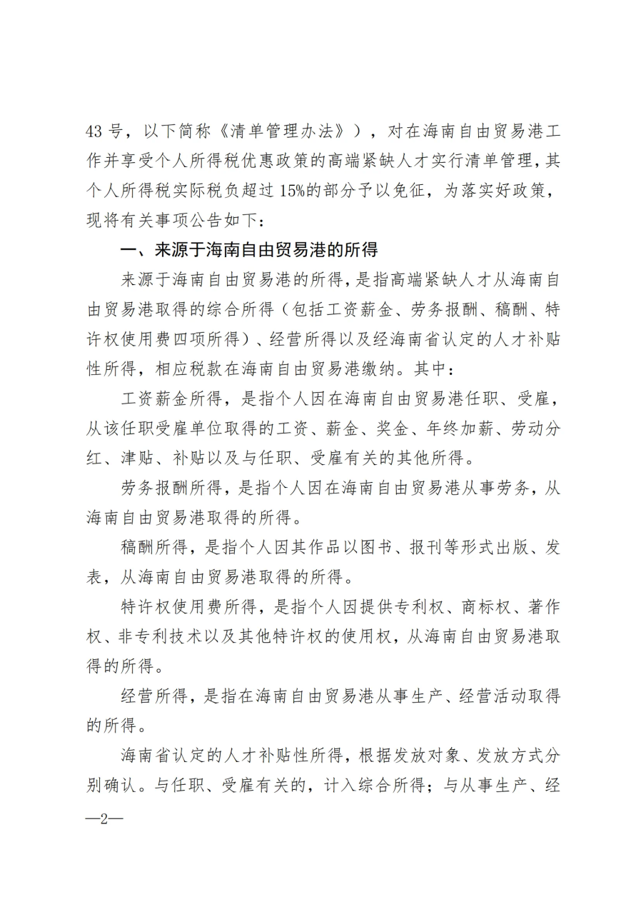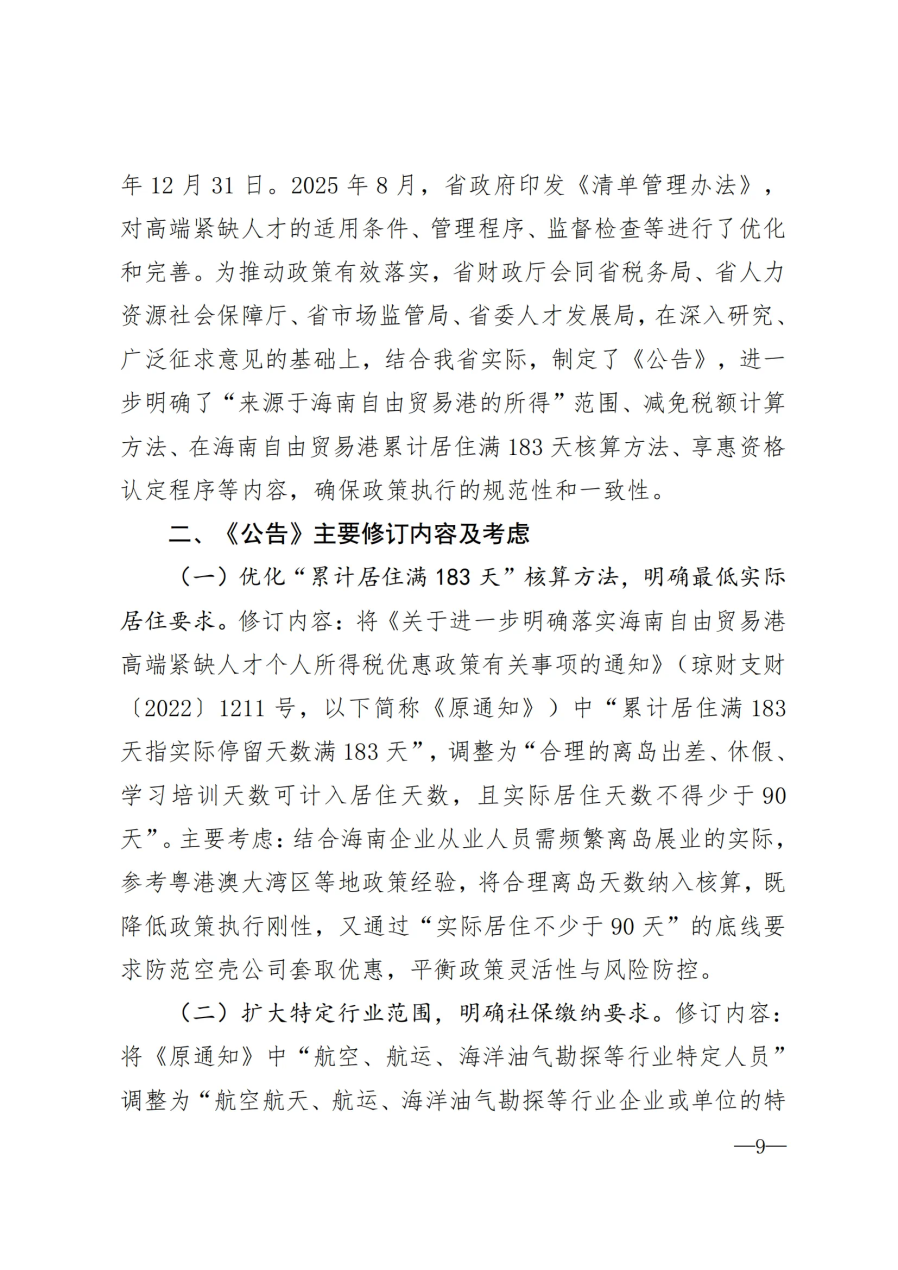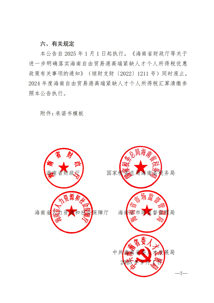 2025年9月4日,海南省财政厅等五部门关于落实海南自由贸易港个人所得税优惠政策有关事项的公告,全文见下: