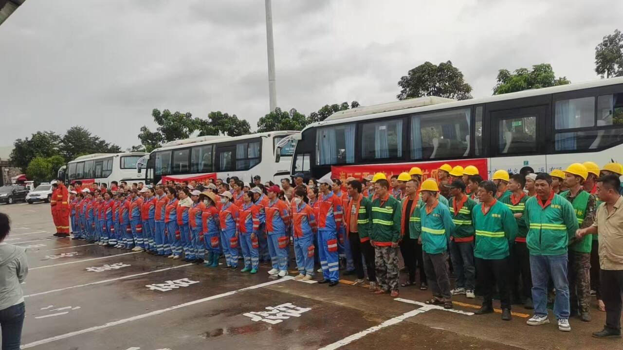“剑鱼”来临后,海口、文昌、儋州、琼海、万宁五地积极响应号召,于24日连夜集合,紧急抽调环卫力量奔赴两地,以高效行动筑牢灾后环境保障防线,助力陵水、三亚尽快恢复整洁有序的生产生活环境。