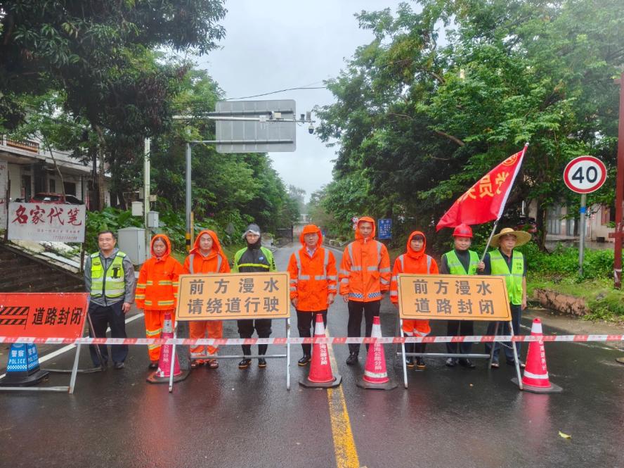 琼海公路分局党员突击队在S201灵文嘉线K109+300-K109+350联先通道进行道路封控并引导车辆绕行,已于12时解除管制