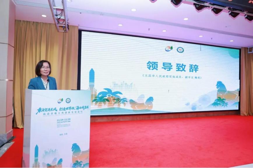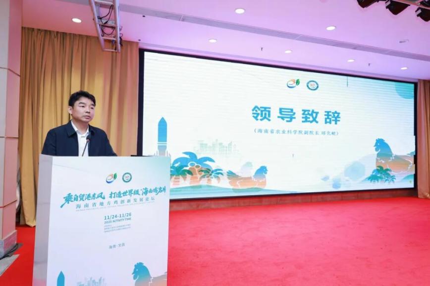 海南省农业农村厅党组成员李芸,海南省农业科学院副院长邱化蛟,文昌市人民政府党组成员、副市长韩亮,三亚中国农业科学院国家南繁研究院副院长虞国平等领导出席论坛并致辞。领导们在致辞中指出,文昌鸡、儋州鸡等地方鸡品种是海南宝贵的畜禽遗传资源,是现代农业的“芯片”,更是自贸港建设背景下的“战略王牌”。当前海南已构建起海南省地方鸡全产业链基础,“文昌鸡”品牌价值突破百亿,但仍面临种源创新、标准化养殖及品牌建设等瓶颈。论坛的举办恰逢其时,为凝聚行业合力、破解发展难题、抢抓自贸港机遇搭建了重要平台,希望各方以此次论坛为契机深化合作,推动海南省地方鸡从国内知名品牌向世界级美食文化符号跨越。出席本次论坛的还有西北农林科技大学原副校长、海南研究院院长陈玉林,海南省农业农村厅畜牧兽医处副处长吴小干,海南省农业科学院畜牧兽医研究所原所长谭树义,海南省农业科学院畜牧兽医研究所所长李新建,文昌市农业农村局党组成员、副局长王龙华,中国热带农业科学院产业处副处长张少帅等相关领导。