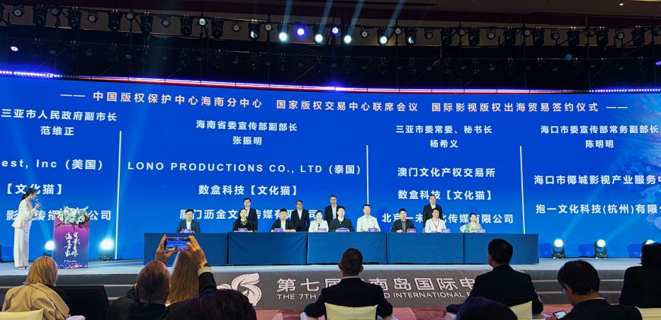 第七届海南岛国际电影节于12月3日在三亚盛大启幕,全球影人共聚一堂。在海南自贸港封关运作进入全面冲刺的关键历史时刻,作为电影节核心商务活动的影视产业招商推介大会于12月4日同期举办,备受瞩目。本届电影节及推介会承载着为国家影视出海战略探路、为自贸港现代服务业升级赋能的重要使命。作为海南省重点扶持的科技文化企业,在中国版权保护中心海南分中心和国家版权交易中心联席会议的支持下,数盒科技深度参与海南影视版权国际资源对接与价值转化体系建设,旗下核心产品——【文化猫】数字版权交易平台,官方承接本届电影节影视版权出海板块,并以一系列重磅战略签约与实质性交易成果,展现了其在数字文化版权贸易领域的领先实力,成为推动中国影视文化高水平跨境流通的关键力量。