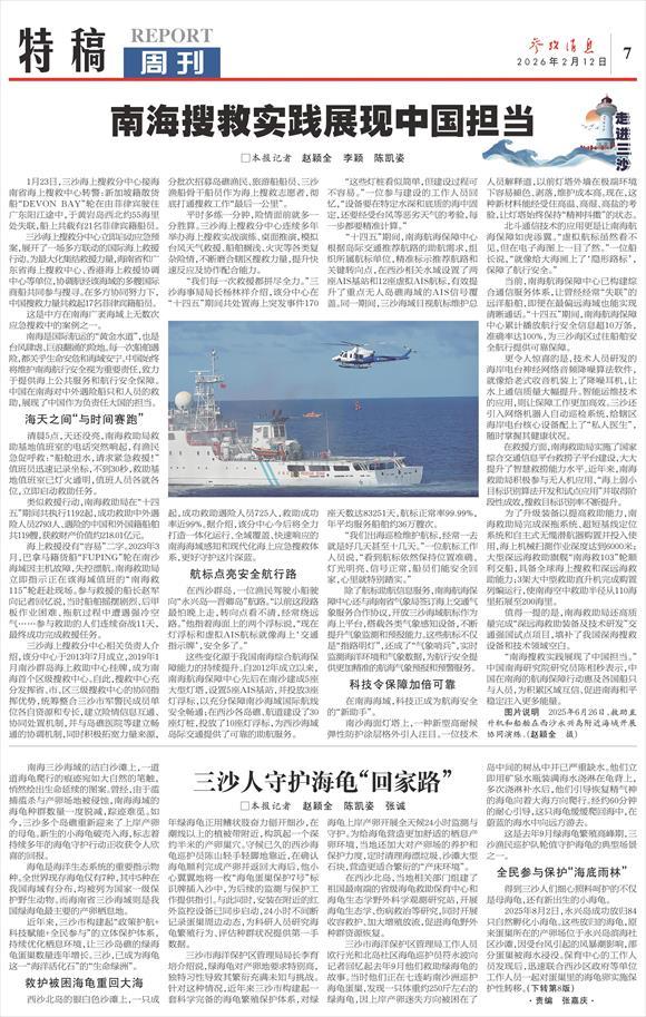 “南海搜救实践展现了中国担当。”中国南海研究院研究员陈相秒表示,中国在南海的航海保障行动惠及各国船只与人员,为积累区域互信、促进南海和平稳定注入更多能量。