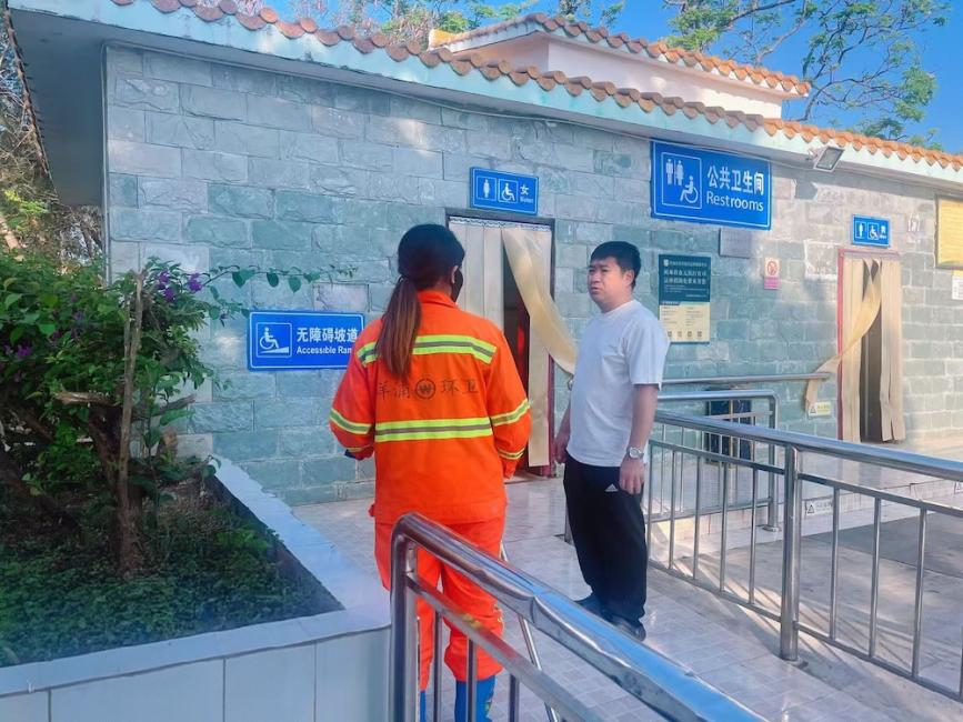 检查千年古盐田旅游景点垃圾清运和公厕保洁工作