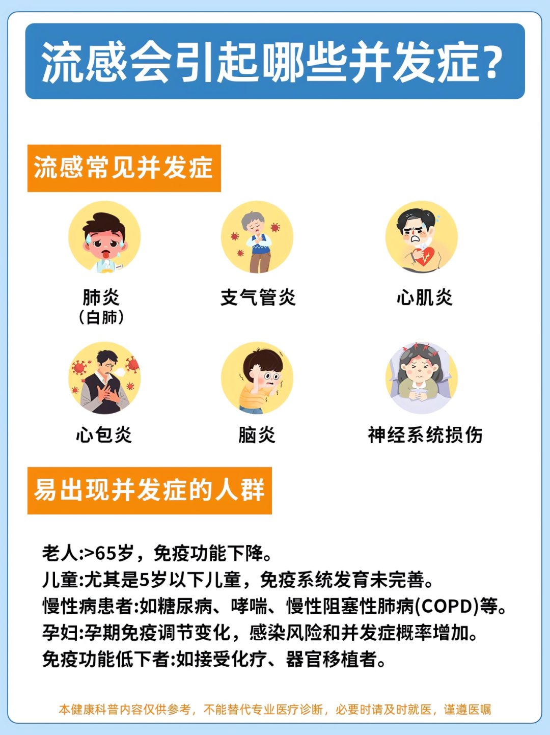 流感并非“扛一扛就好”,部分患者可能出现严重并发症,尤其特定人群感染后风险更高。流感病毒可能侵袭呼吸系统、神经系统、心血管系统等,引发多种并发症。
