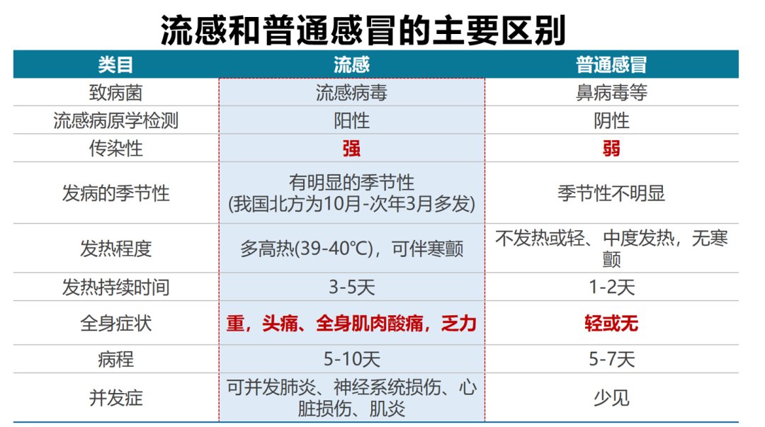 我们首先必须认清一个事实:流感≠普通感冒。它的病毒更凶猛,引发的症状更重,通常以高烧(39~40℃)、头痛、全身肌肉酸痛为主要特征,并伴有显著的乏力感。而普通感冒则多以打喷嚏、流鼻涕等呼吸道卡他症状为主,全身症状较轻。