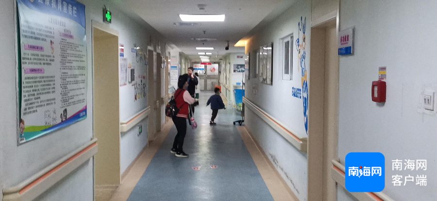 资料图:海口市人民医院儿童医学部内,家长带娃看病。记者王康景摄