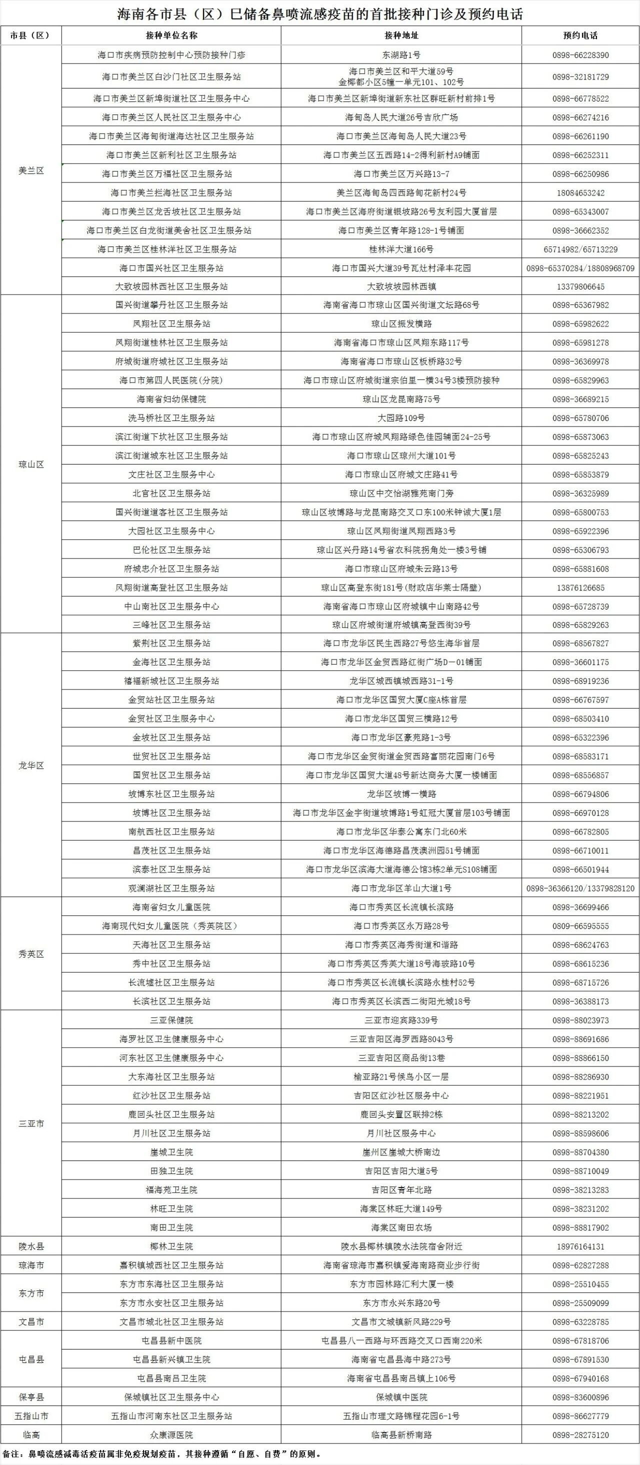 值得一提的是,海南省多地社区卫生服务中心、预防接种门诊目前已陆续开启流感疫苗接种服务。