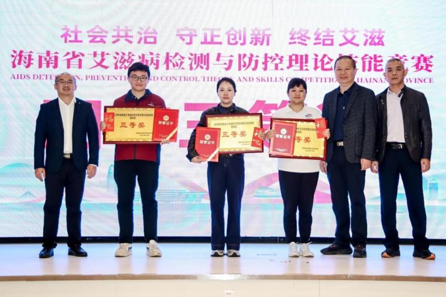 竞赛中,各代表队充分彰显了良好的团队协作精神与精湛的业务技能。来自三亚市的代表队在技能比拼环节,凭借熟练规范的操作技术和精准的结果判读,赢得了评委的一致赞誉;海口市代表队在抢答题环节反应迅速、答题准确,多次获取加分。最终,本次竞赛评选出团体一等奖1名、二等奖2名、三等奖3名,12支代表队荣获优秀奖,11名选手被评为个人全能奖。在颁奖仪式上,组委会领导为获奖队伍及个人颁发了奖杯、证书,并鼓励全体参赛人员以此次竞赛为契机,持续提升专业能力,在艾滋病防治一线再创新绩。