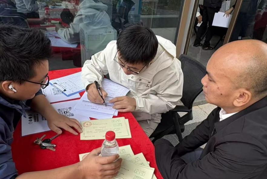 为保障交付工作顺利进行,项目投资建设方海口产投集团下属第叁置业公司联合恒盈物业公司在现场设立了一站式服务区,提供从物业手续签订、钥匙领取到验房收房的全流程服务,整个交付流程井然有序。工作人员专业细致的服务,让业主感受到贴心与温暖。