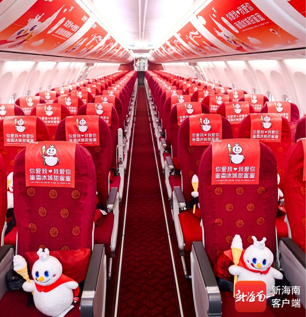“蜜雪冰城雪王”主题航班上“雪王”主题视觉。海南航空供图