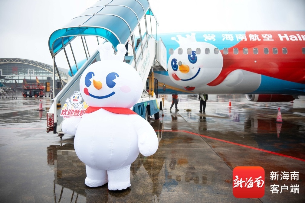 “雪王”欢迎旅客登机。海南航空供图
