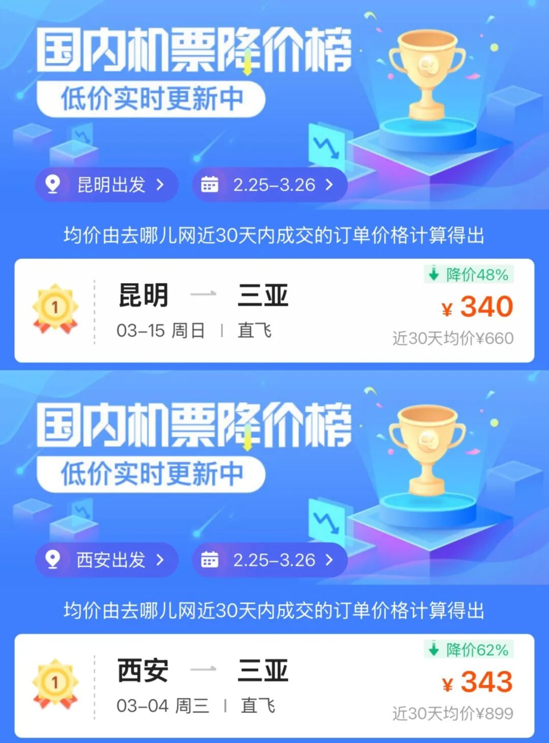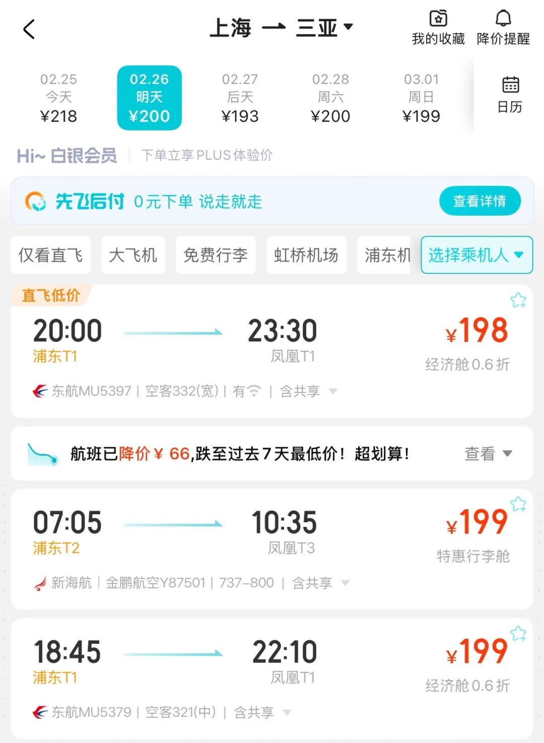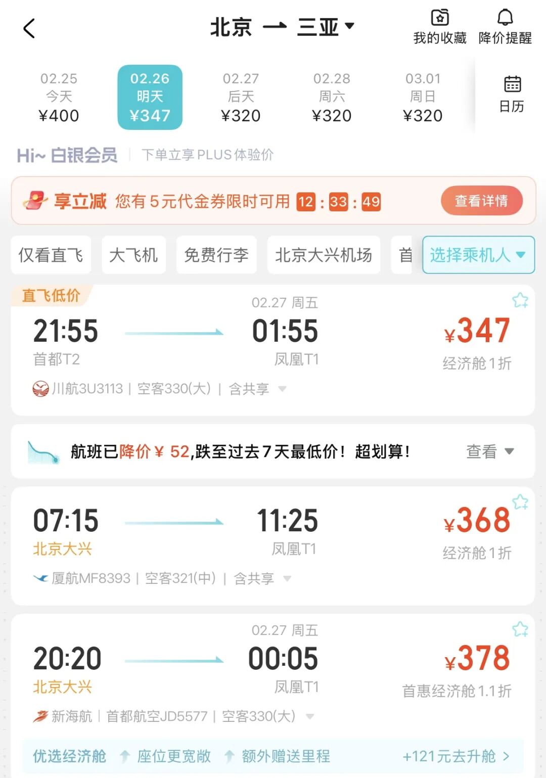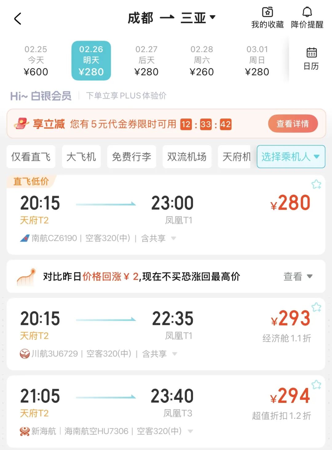 错峰飞往三亚的机票价格