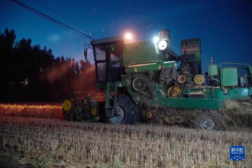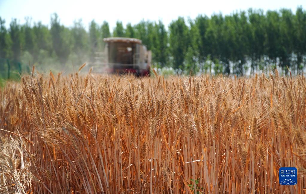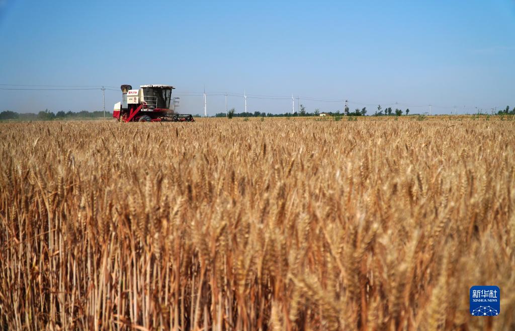 6月14日,山东省邹平市台子镇乡情农业种植合作社在台东村收割小麦。