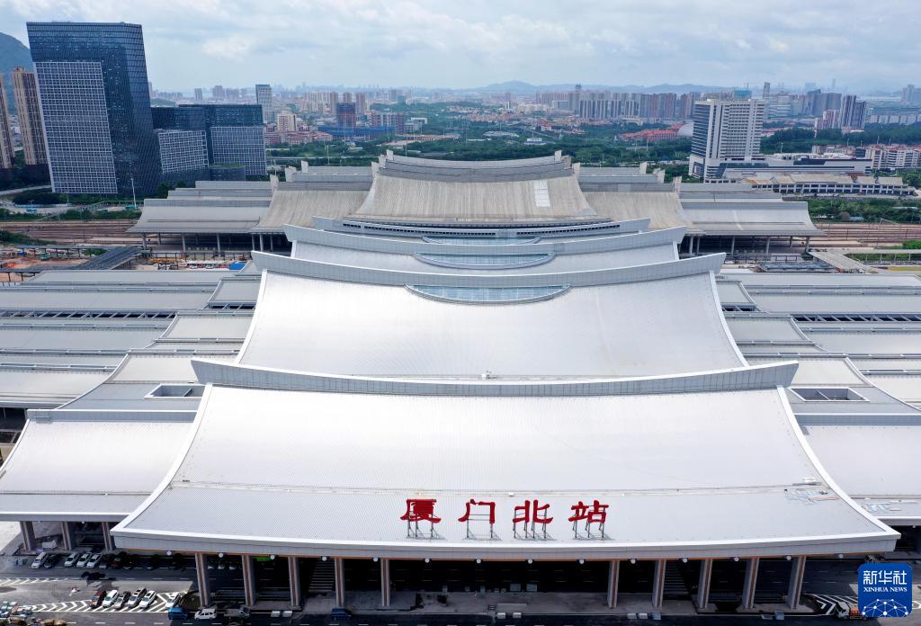 这是6月19日拍摄的福厦高铁新建厦门北站(无人机照片)。