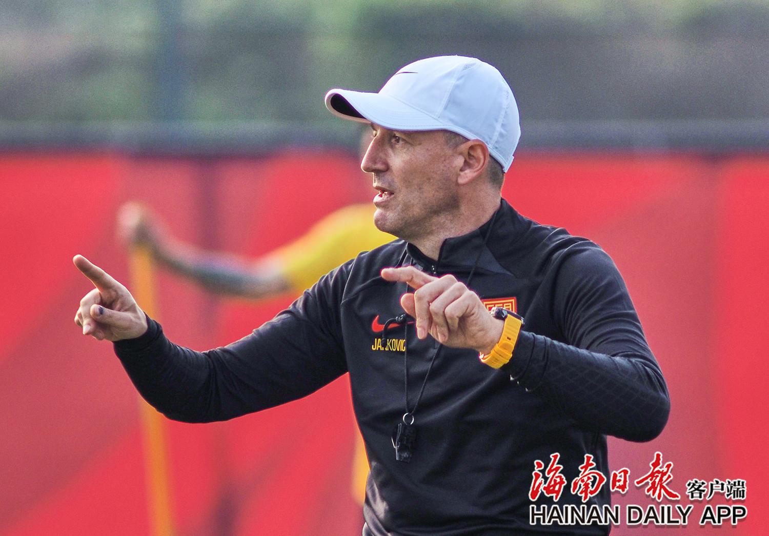 国足新任主教练亚历山大·扬科维奇在训练中指导球员。