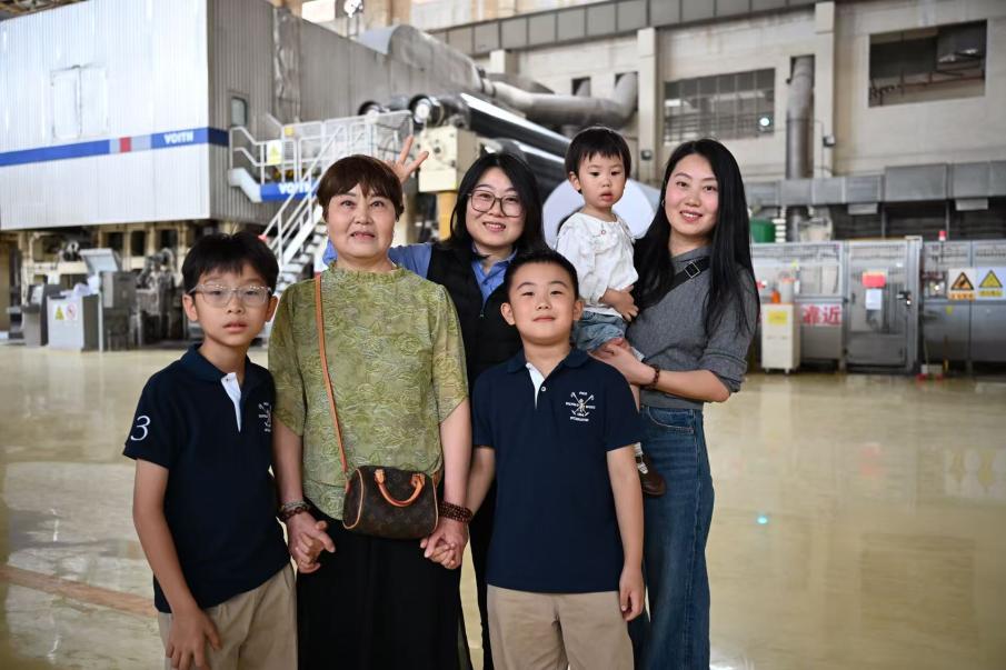 随后,家属们步入文化纸机加工车间,亲眼目睹全球顶尖文化纸机的生产现场。巨大的设备规模与高速运行的生产流程带来视觉与心灵的震撼,让家属们深切体会到金海浆纸的技术实力与工业之美。