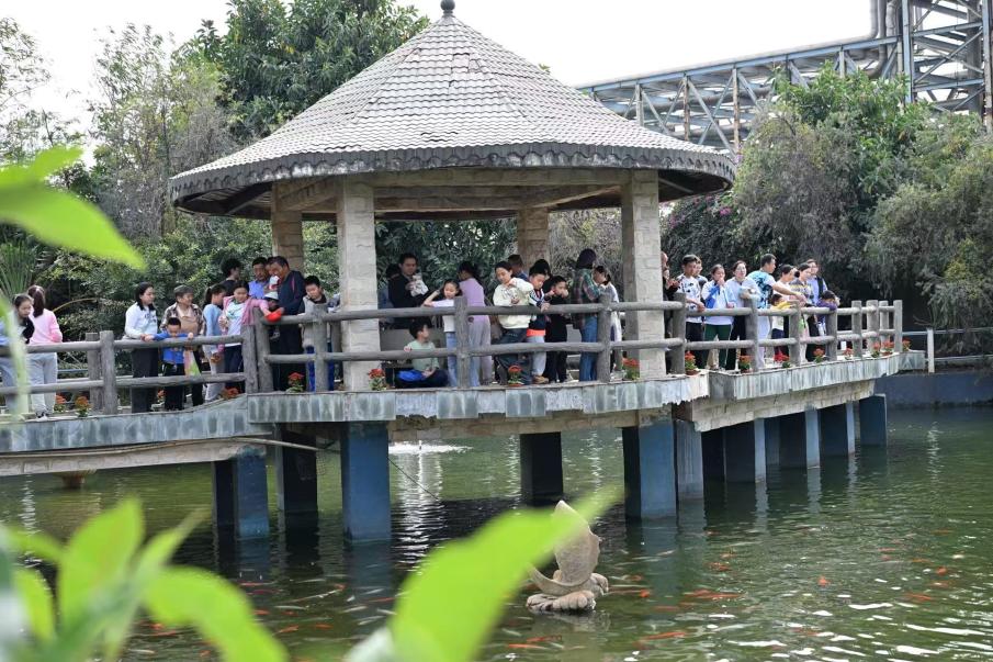 在污水处理厂废水养鱼池,家属们兴致勃勃地参与喂鱼活动。清澈的水质与欢快游弋的鱼群,生动展现了公司在污水处理与环境保护方面的扎实成效,也成为公司环境优美、管理人性化的直观印证。