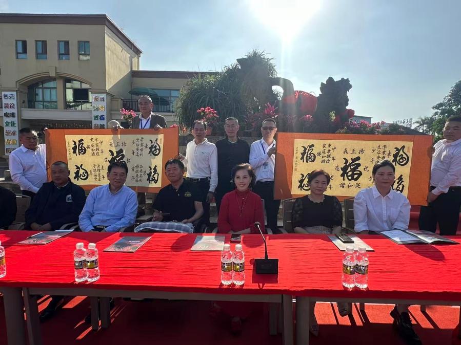 福山农民书法家刘元朝送台创园集团“五福临门、中国夢”书法,象征两岸琼台现代农业产业共谋发展