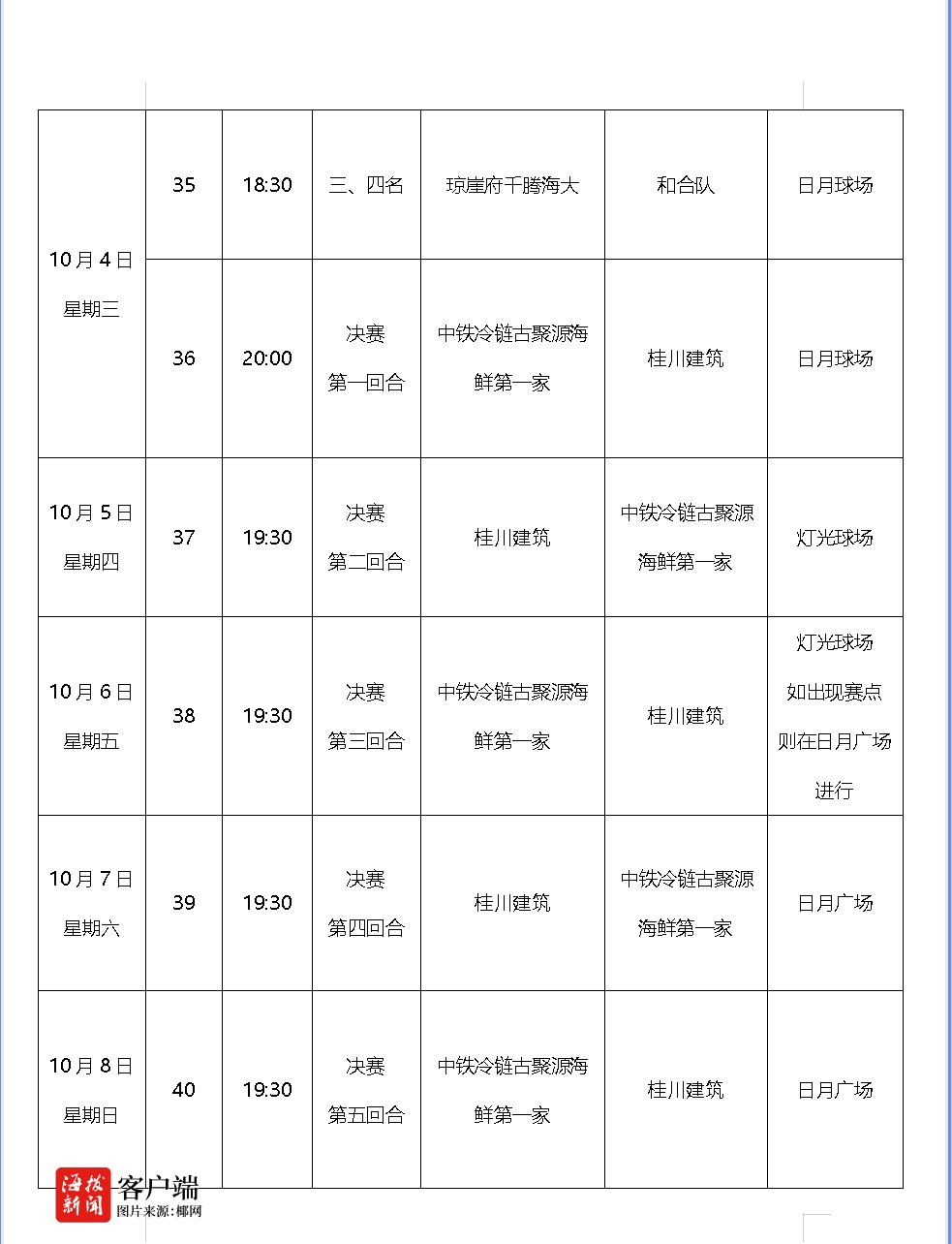 2023年海口市篮球联赛决赛赛程表