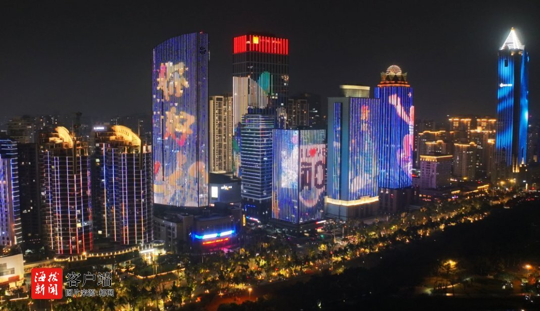 用无人机俯瞰海口,2024年的最后一晚,全城都笼罩在跨年的狂欢氛围之中。