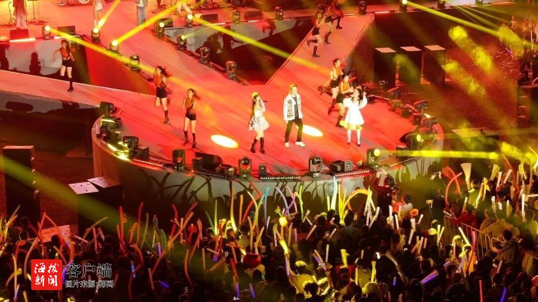 当晚,湖南芒果跨年晚会在海口五源河体育场举办。晚会以“去热爱,活出彩”为主题,以“去舞台化”的方式架构起一座和观众零距离、强互动的“热爱之城”。舞美随着节目的变换呈现出不同氛围和风格,观众跟着表演嘉宾的轨迹在跨年夜“citywalk”,在模拟的城市里发现日常生活的美好时刻。