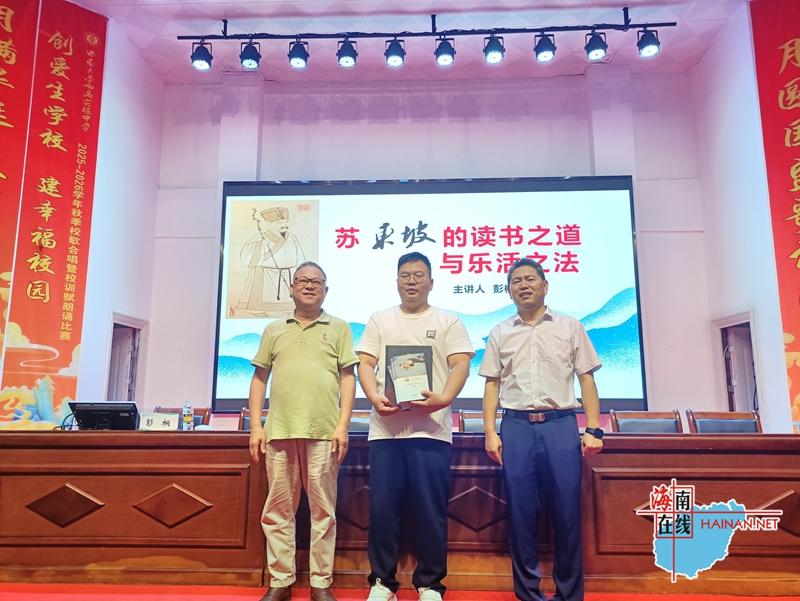 2025年10月15日下午,受西南大学临高实验中学的邀请,海南省作协副主席、海南省苏学研究会常务副秘书长兼琼台文化研究专委会会长彭桐为该校200余名初二学子,进行了题为《苏东坡的读书之法与乐活之道》的专题讲座,受到师生们的欢迎与好评。