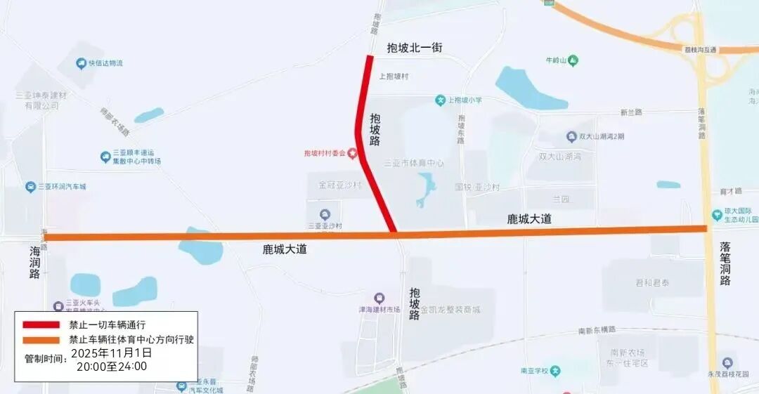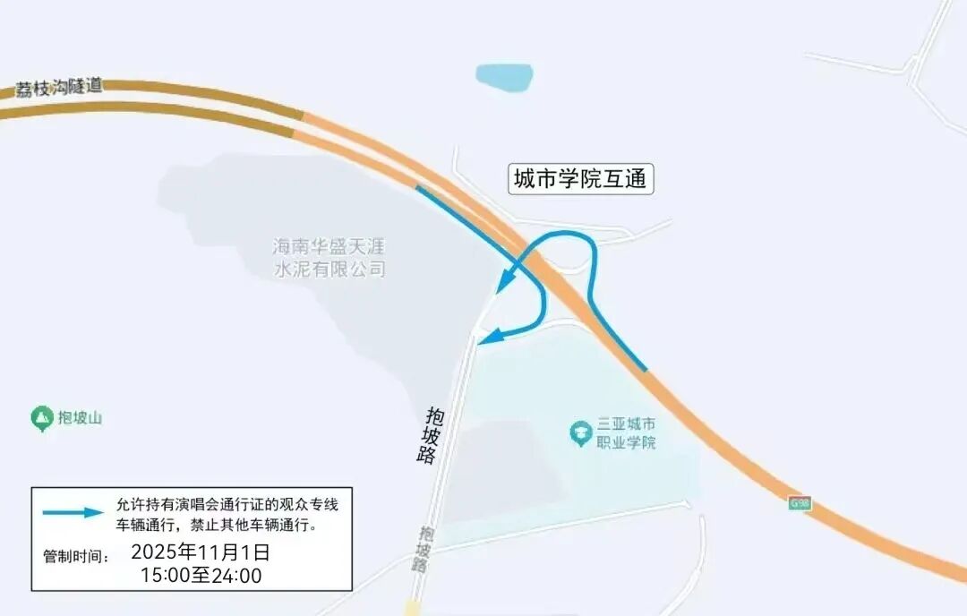 特拉维斯·斯科特演唱会将于2025年11月1日晚在三亚市体育中心白鹭体育场举行。为提升体育中心周边道路通行能力,确保道路交通安全有序,演唱会举办期间将对部分道路实行临时交通管制,对部分类型车辆实行限行管理措施,请各位歌迷朋友注意前往。