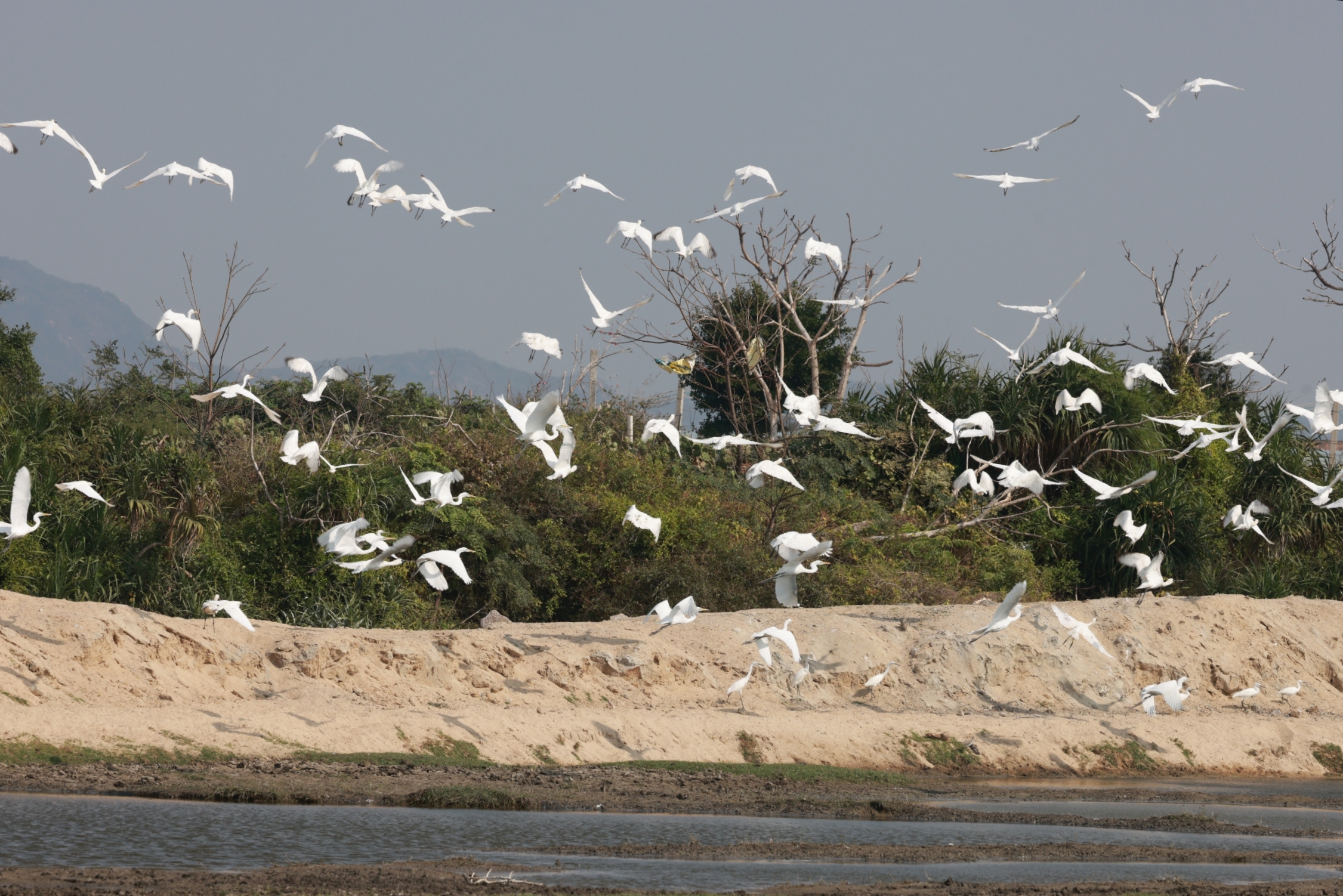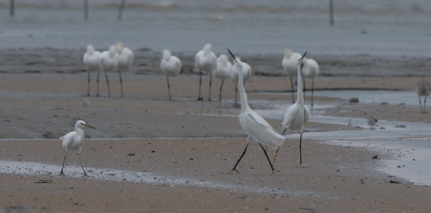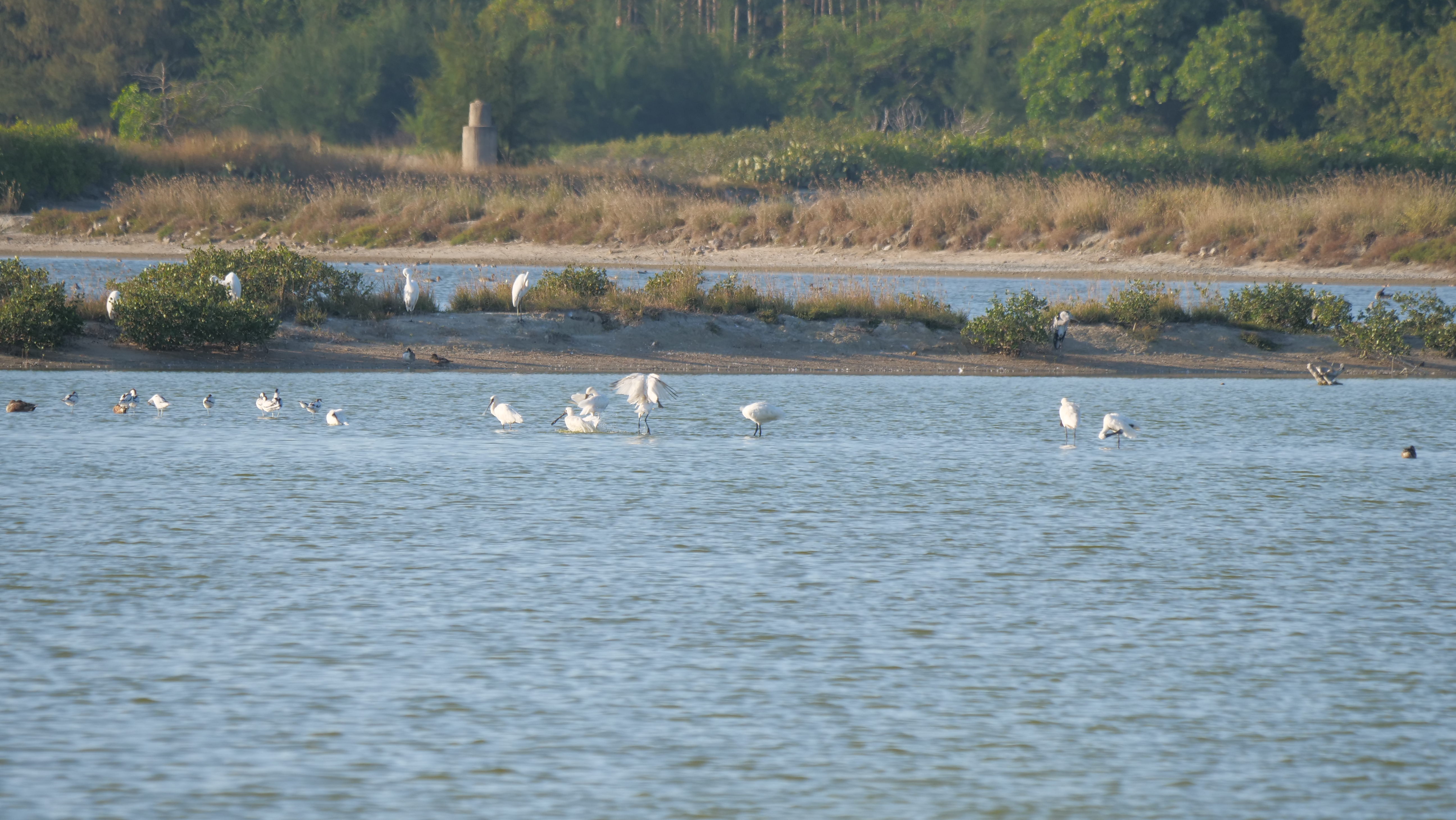 11月2日,在东方黑脸琵鹭省级自然保护区,黄嘴白鹭和黑脸琵鹭两种珍稀的国家一级保护野生动物被同时监测记录到。黄嘴白鹭一身雪白,嘴、颈、脚较长,体态纤瘦优雅。