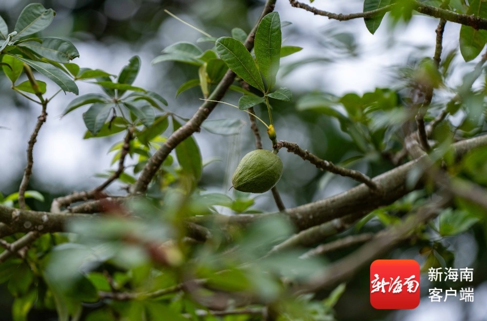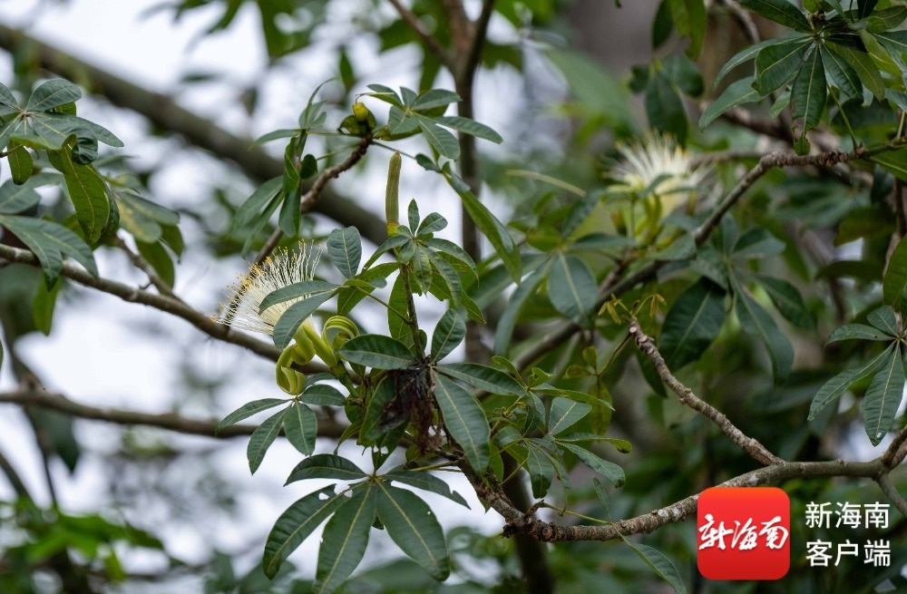 澄迈保良古村内的一株成年马拉巴栗树开花结果。记者刘孙谋摄