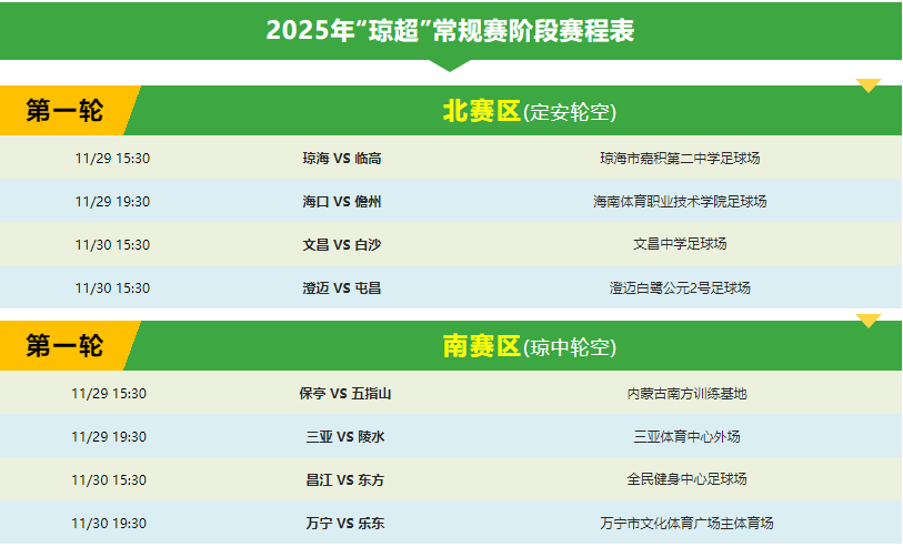 2025年海南省城市足球联赛以下简称“琼超”联赛赛程表已新鲜出炉快来支持你的家乡球队吧!