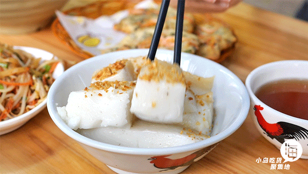 白粿是大米做的新鲜米糕食物,上面撒上一层蒜头油,配之自酿的甜醋,主打一个软糯香甜。