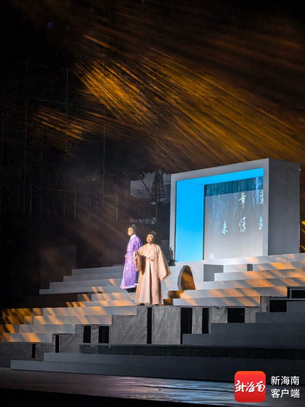 作为中国首部AI概念国风音乐剧,《心安东坡》以科技赋能国风表达,实现传统与现代的完美结合。全剧以宋代美学意境为基底,舞台设计撷取海南自然景观与人文元素,倾斜弧面舞台象征东坡跌宕人生,光影流动宛如南海波涛。