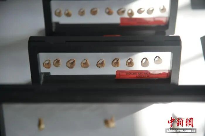 图为2025年度三亚落笔洞遗址联合考古发掘出的织纹螺贝饰标本。张月和摄
